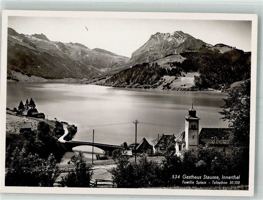 8858 Innerthal Wägital 1946 Folienkarte / Lackkarte Gasthaus Stausee