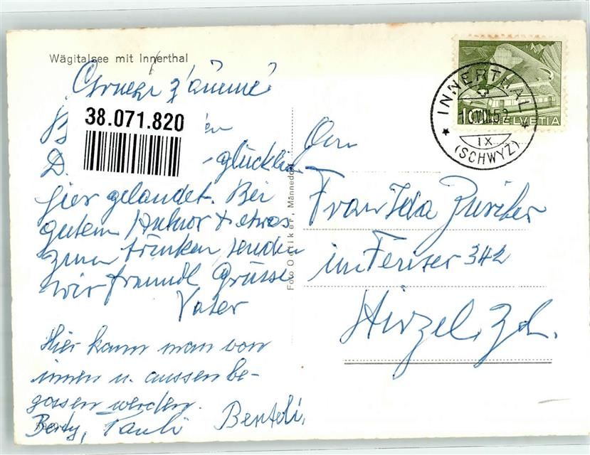 8858 Innerthal Wägital 1952 Foto AK Kirche Kreuz