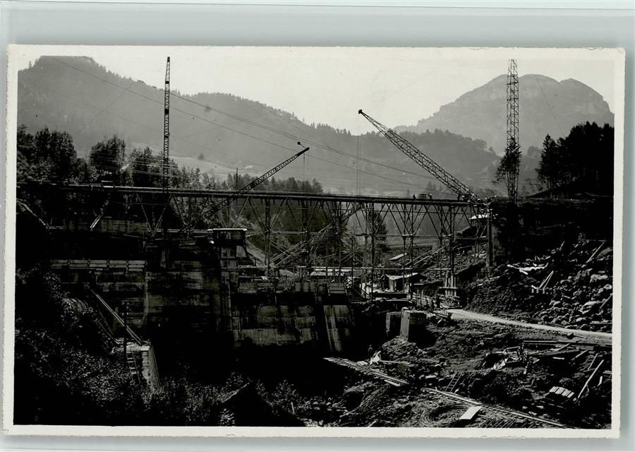 8858 Innerthal Wägital Foto AK Kraftwerk Staumauer Rempen Kräne