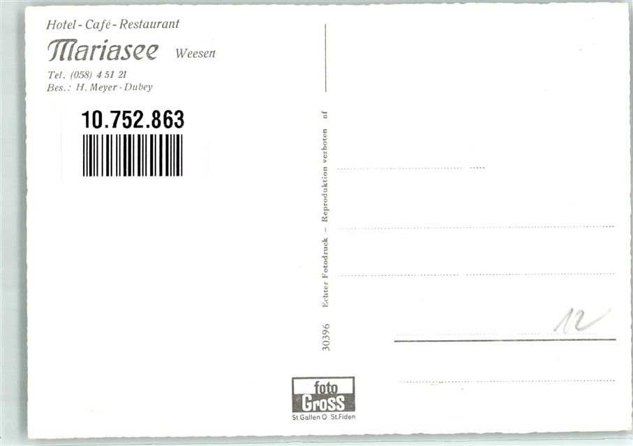 8872 Weesen Foto AK Hotel Cafe Gasthaus Mariasee