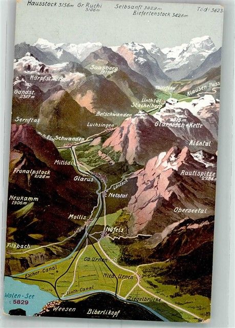 Weesen, Vogelschau Mollis Glarus Schwanden