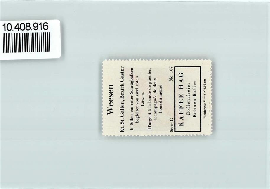 Weesen, Vignette Wappen Kaffee Hag ca 1920-1940 Löwe