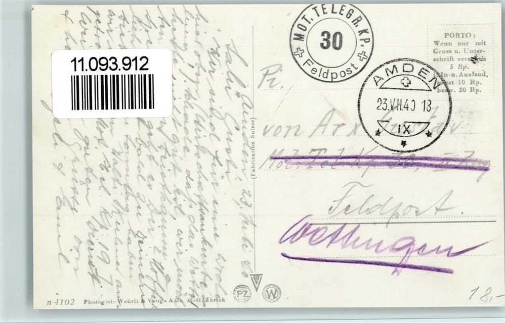 Amden, Partie an der Poststraße von Weesen nach Amden Ort laut Stempel