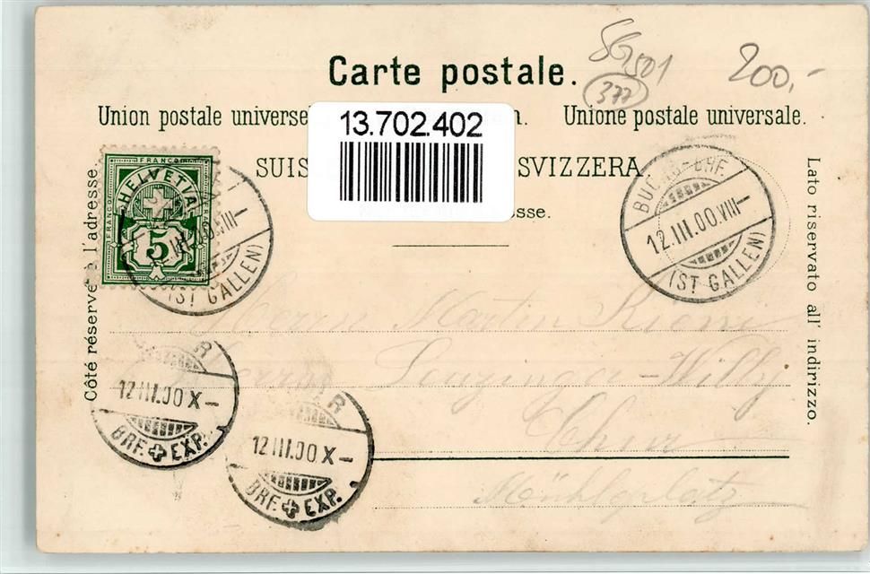 8877 Murg 1900 BOAKC Lithographie Hotel Schiffli Verlag Künzli Nr 1727