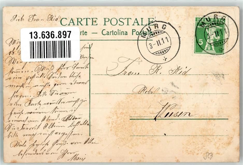 8877 Murg 1911 Prägedruck Wappen Tell Helvetia Passepartout Lithographie