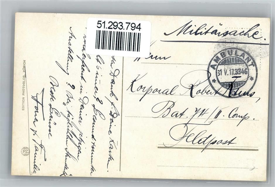 8877 Murg - 1917, Feldpost, Walensee, Kirche
