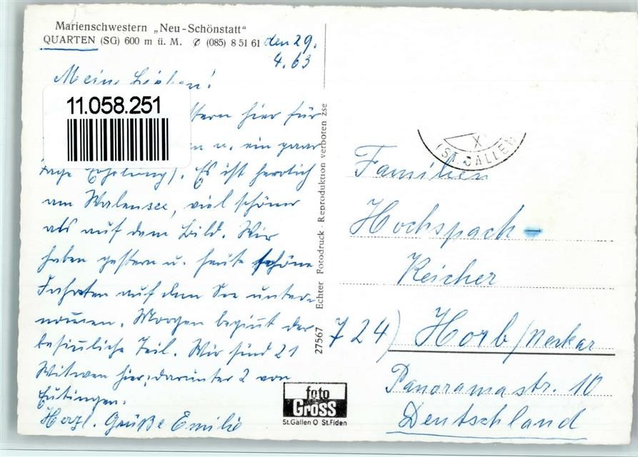 8883 Quarten - Blick auf Walensee und Churfirsten Marienschwestern Neu-Schönstatt