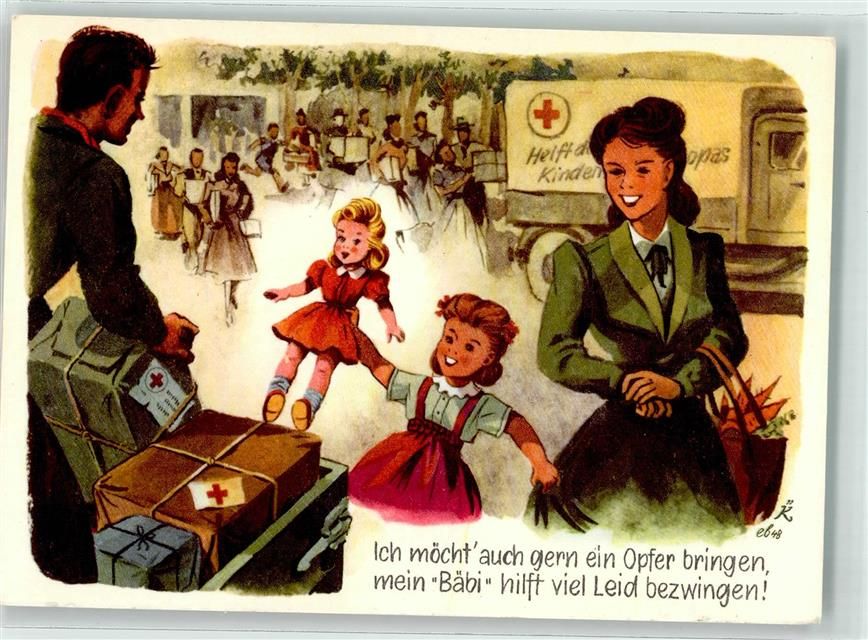 Mels, Rotes Kreuz Aktion für das Weisstannental Mutter Tochter Puppe Spendenkarte