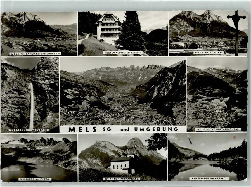 Mels, Wasserfall bei Patöni St Antoniuskapelle Hotel Waldheim Feldpost Mat Kp 62