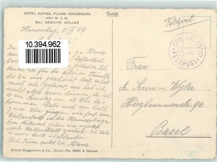 8896 Bergheim Flumserberg 1937 - Hotel Alpina Feldpost