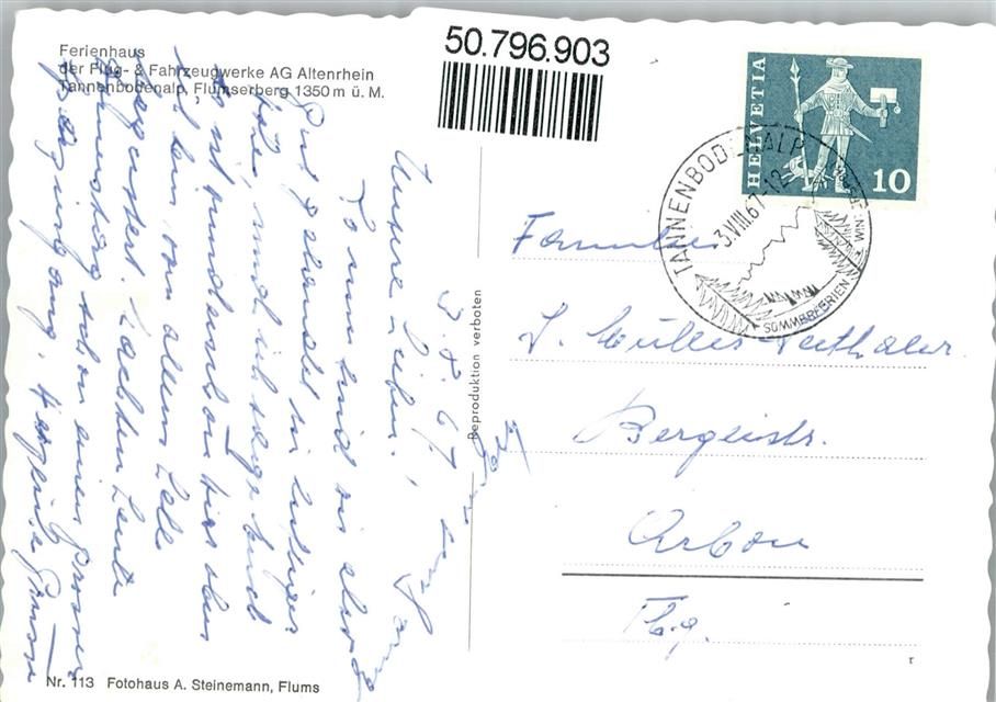 Tannenboden, Ferienhaus der Flug- und Fahrzeugwerke AG Altenrhein, Tannenbodenalp