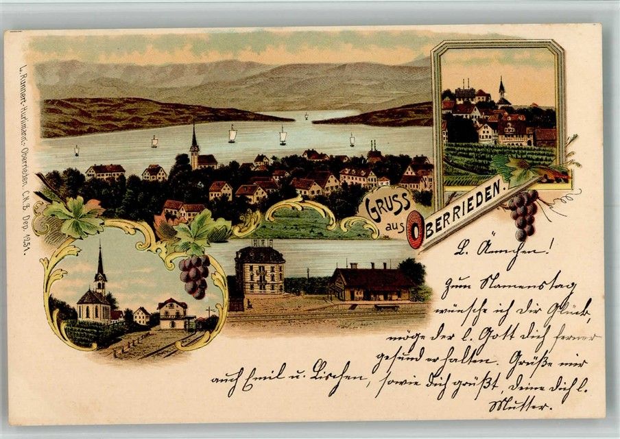 Oberrieden, Kirche Bahnhof Lithographie