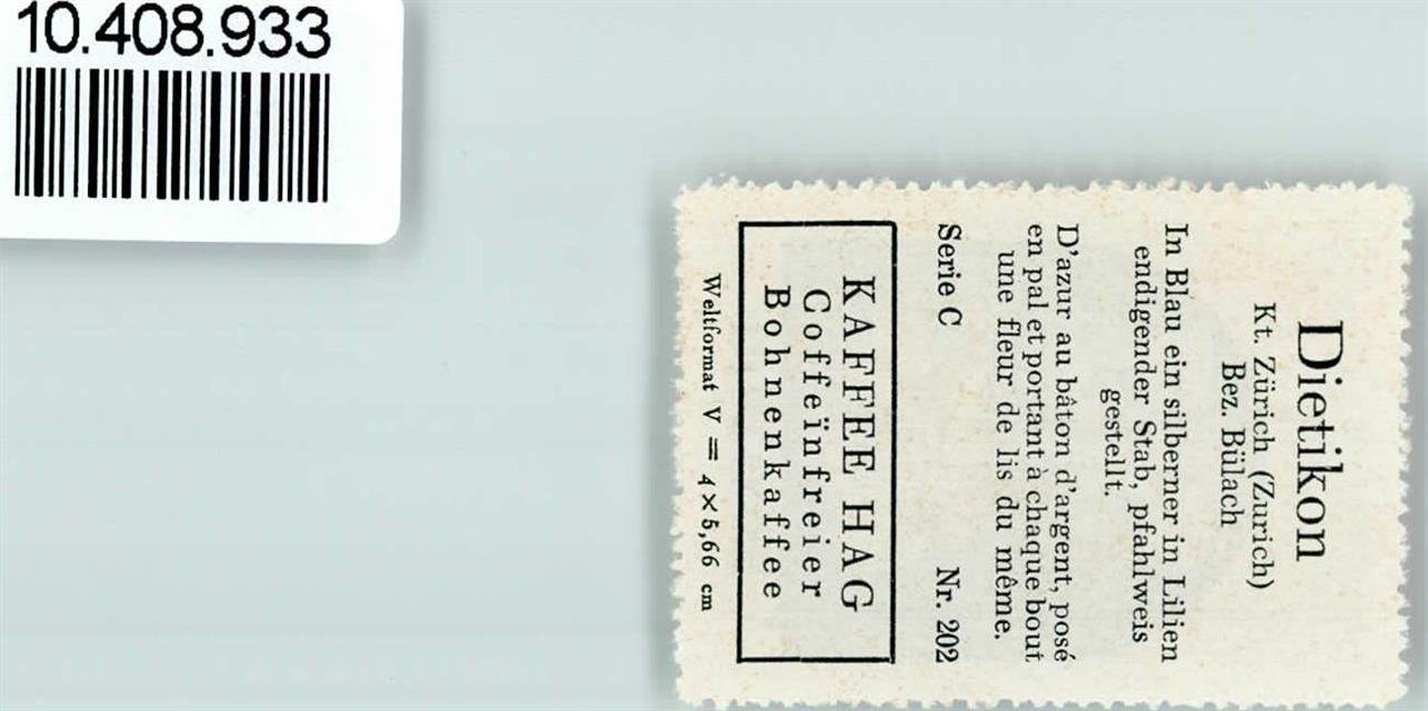 8953 Dietikon - Vignette Wappen Kaffee Hag ca 1920-1940 Lilie