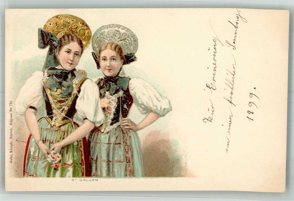 9000 St. Gallen S. Gallo 1899 Lithographie Tracht