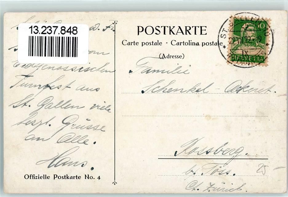 St. Gallen, Offiz. Karte Nr. 4 57. Eidgenössisches Turnfest AK