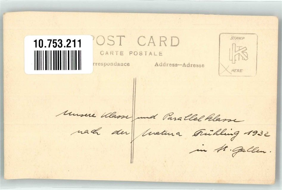 St. Gallen, Studentika Gruppenfoto Ort handschriftlich