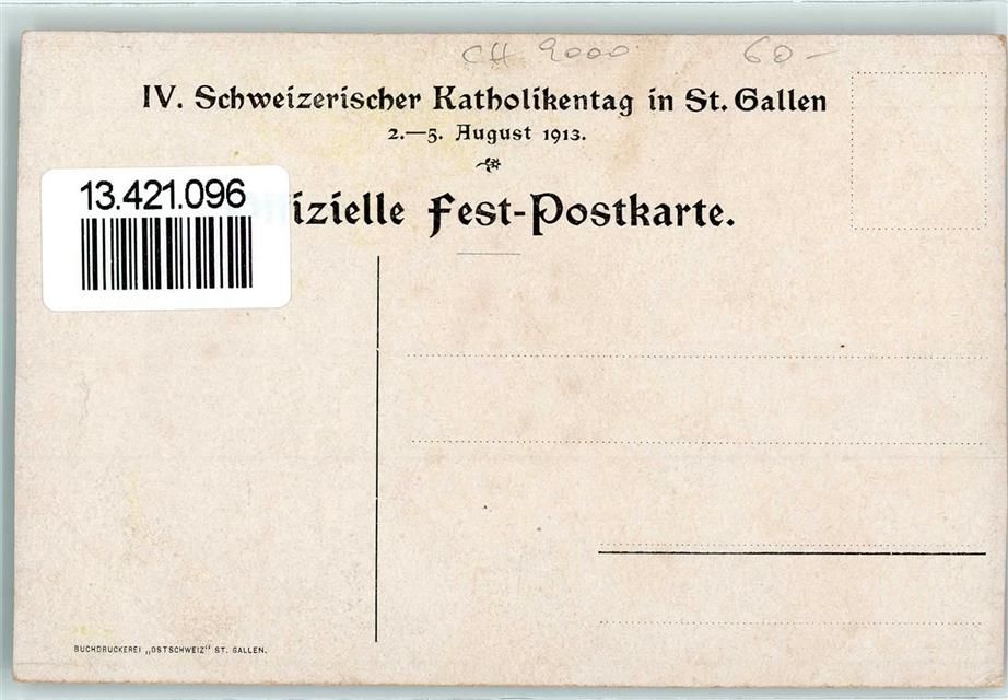 St. Gallen, sign. Aug. M. Bächliger IV Katholikentag 1913 Religion AK