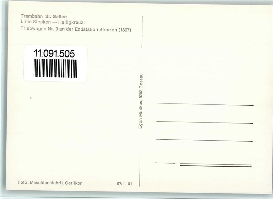 9000 St. Gallen S. Gallo - Trambahn Linie Stocken-Heiligkreuz Triebwagen Nr. 9 an der Endstation Stocken