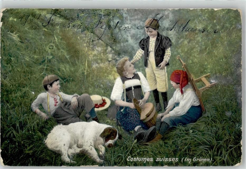 9042 Speicher 1911 Lithographie Tracht Kinder
