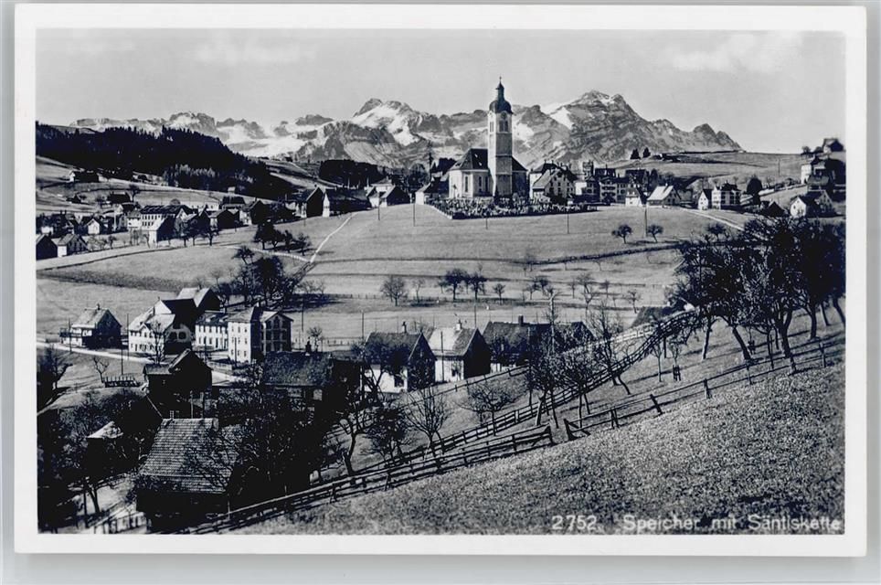 9042 Speicher - Kirche, Ortsansicht mit Säntiskette