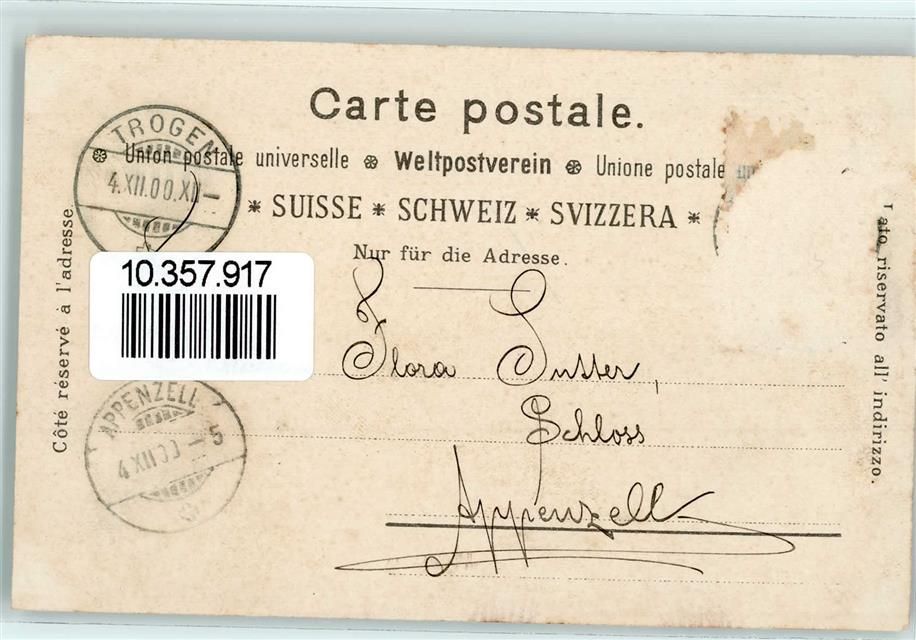 9043 Trogen 1900 Karte beschädigt Humor Ort lt. Stempel