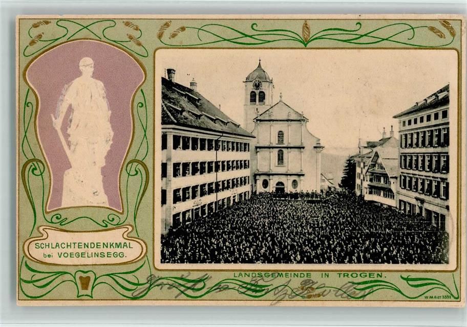 9043 Trogen 1904 Passepartout Prägedruck Schlachtendenkmal bei Voegelinsegg Landsgemeinde Lithographie