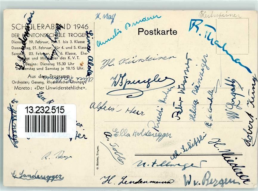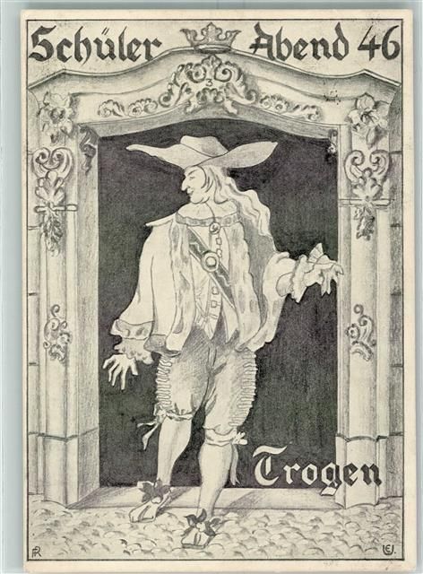9043 Trogen 1946 Künstlerkarte Schüler-Abend Kantonsschule sign