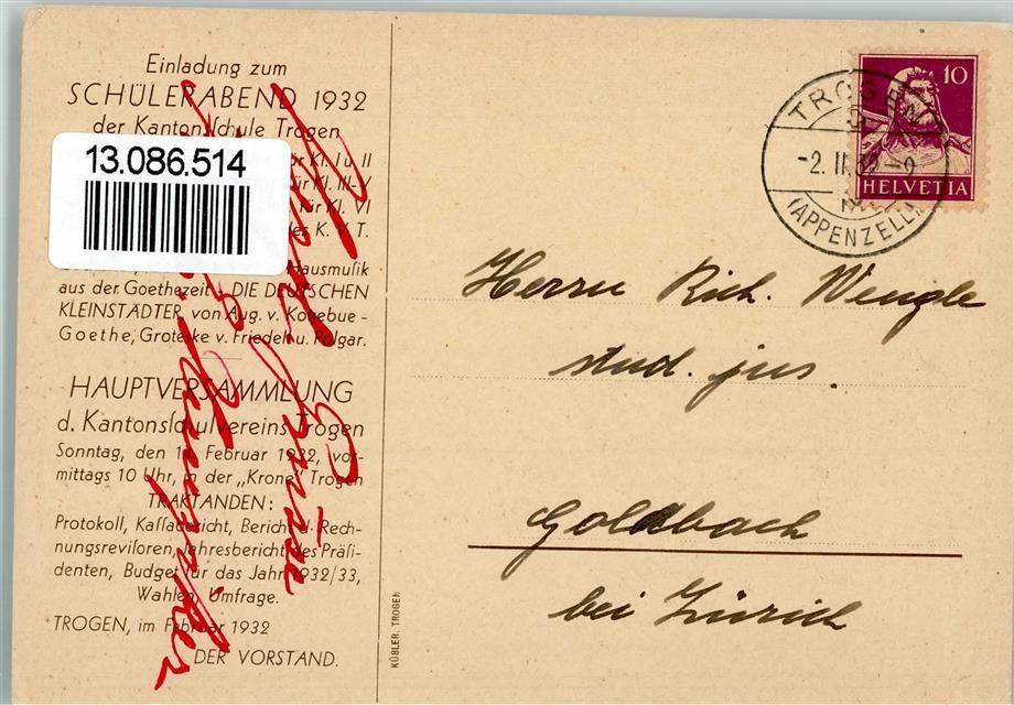 Trogen, Einladung zum Schülerabend