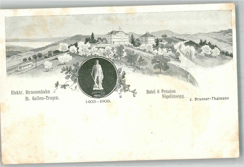 Trogen, Denkmal 1403-1903 Hotel Pension Vögelinsegg Straßenbahn