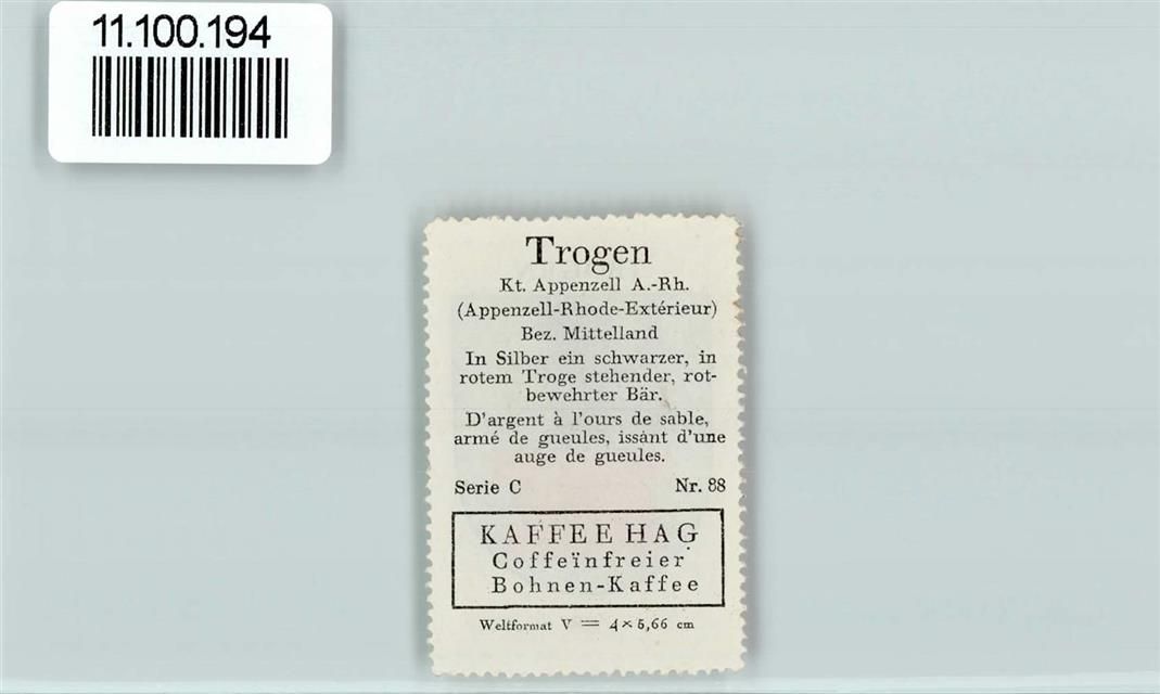 Trogen, Vignette Wappen Kaffee Hag ca 1920-1940