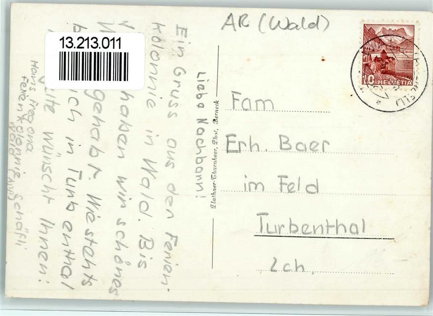 9044 Wald AR 1943 Foto AK Gasthaus und Metzgerei Schäfle , Mitarbeiter stehen vor dem Haus . sehr gute Erhaltung AK