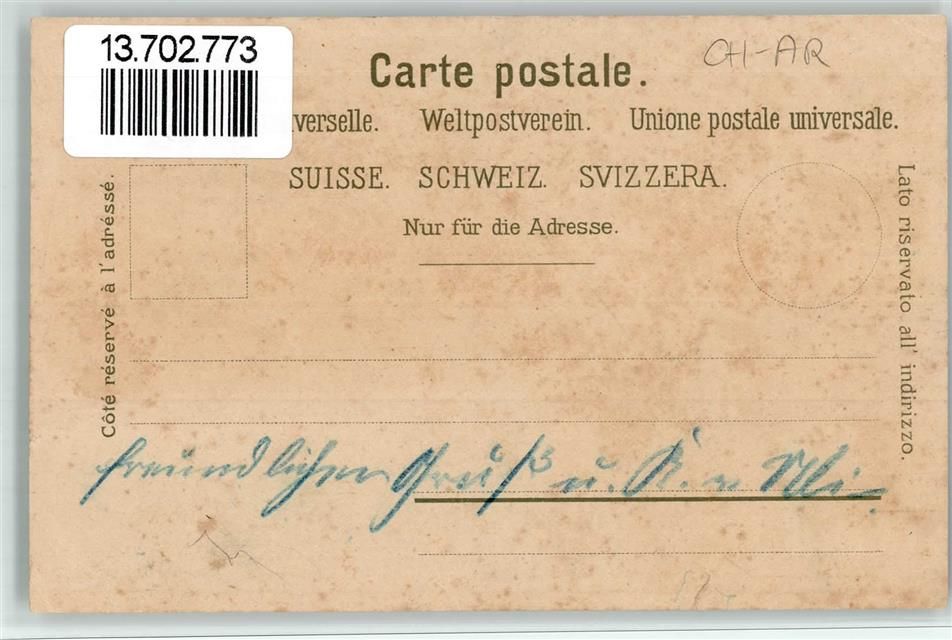 Wald AR, Lithographie Neue Kirche Glocken Post Alte Kirche Gebrauchsspuren, bitte Scan genau beachten!
