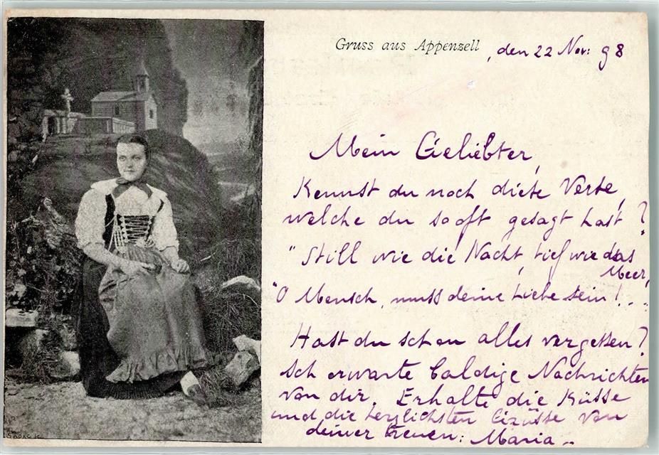 9050 Appenzell 1898 Gebrauchsspuren Trachtenfrau