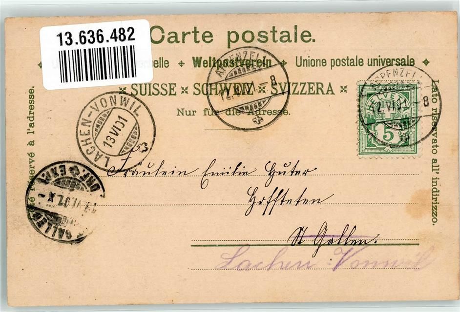 9050 Appenzell 1901 Lithographie Schloss Wildkirchli Hotel Hecht Seealpsee Hotel Pension Weissbad