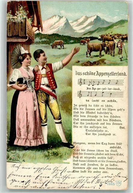 9050 Appenzell 1908 Lieder AK Paar Kühe