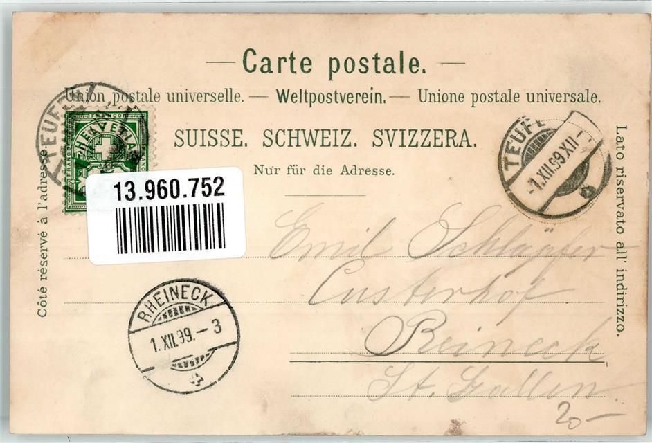 Teufen AR, Tracht Pfeife Appenzellerland Ort lt. Stempel