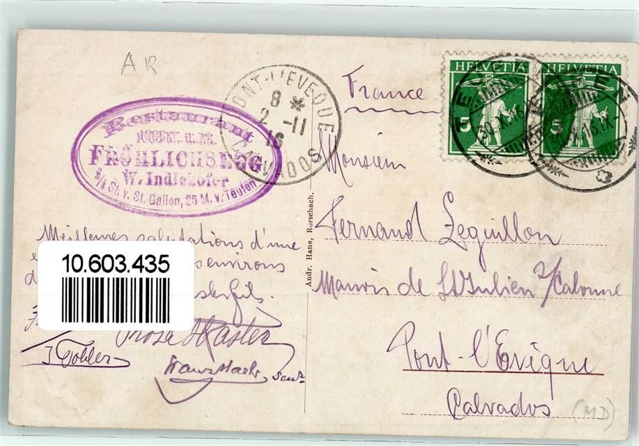 9053 Teufen AR 1916 Gebrauchsspuren Aussichtspunkt Gasthaus Fröhlichsegg Wetterfahne