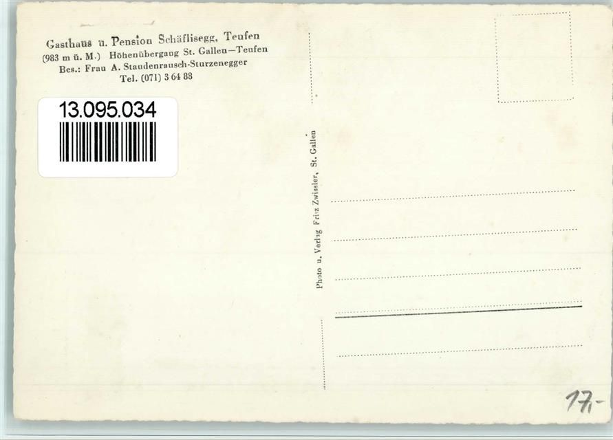 9053 Teufen AR - Gasthaus und Pension Schäflisegg Höhenübergang St. Gallen-Teufen
