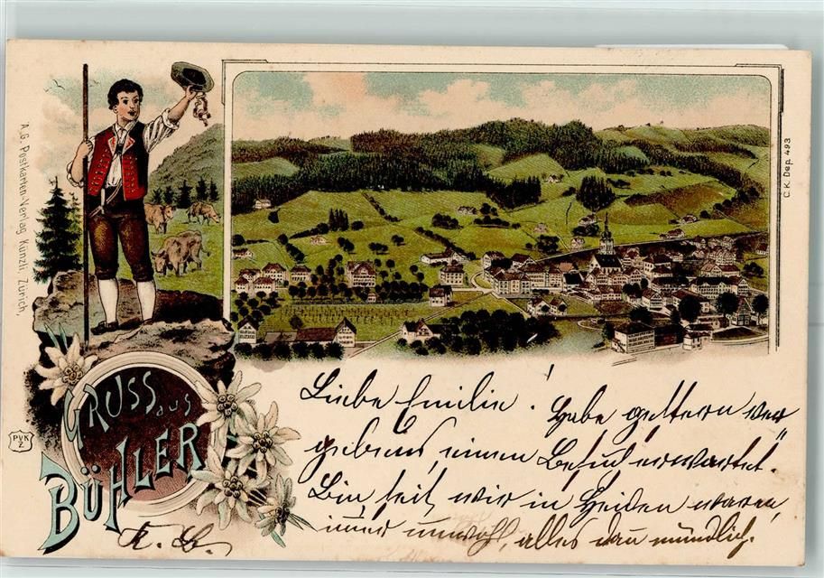 9055 Bühler 1903 Lithographie Kuhhirte Kühe