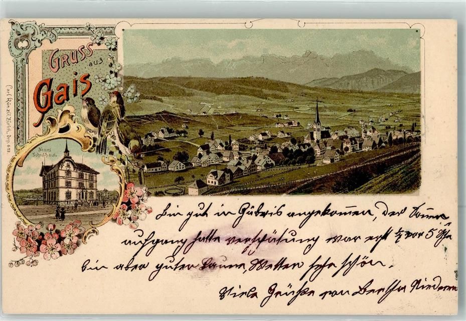 9056 Gais 1898 Lithographie Neues Schulhaus Verlag Künzli Nr 698