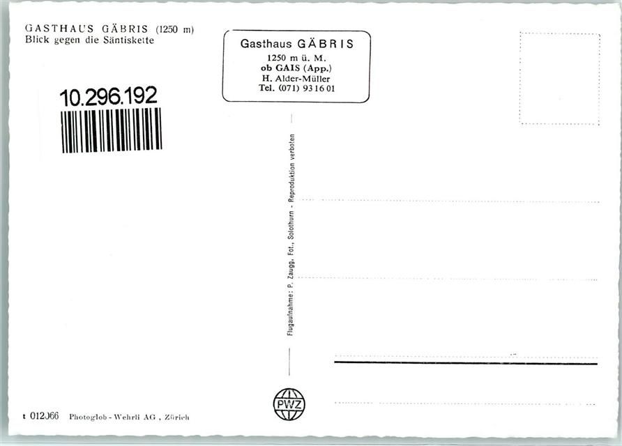 9056 Gais 1965 - Gasthaus Gäbris AK