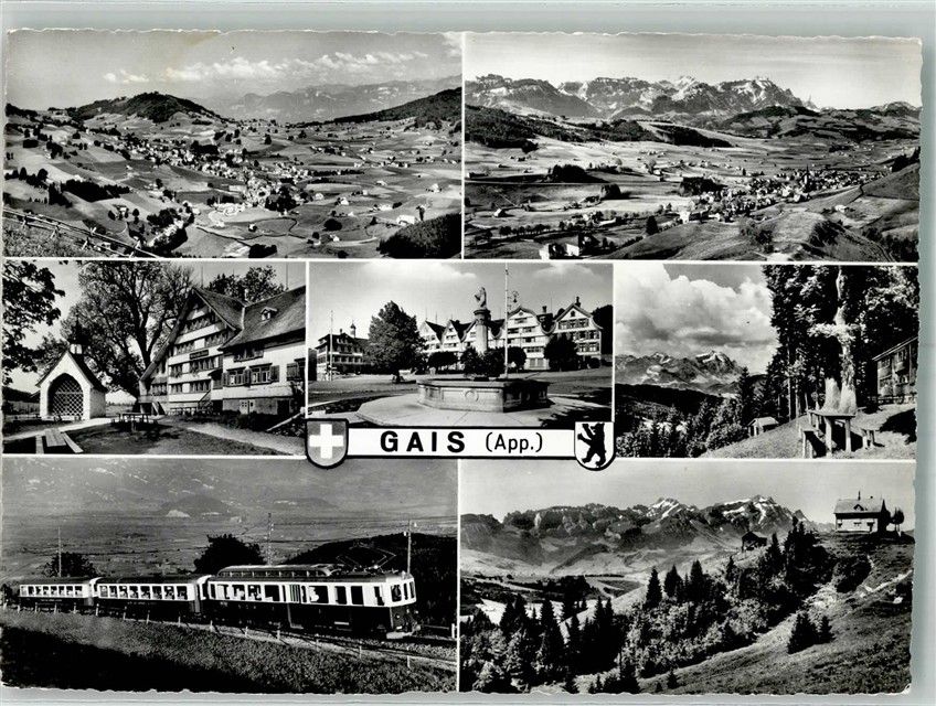 9056 Gais Foto AK Bergbahn Denkmal Brunnen Hotel