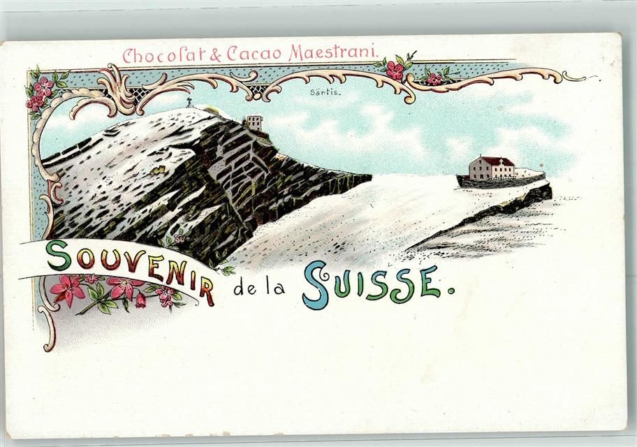 9057 Schwende Lithographie Chocolatu. Cacao Maestrani Winter Säntis