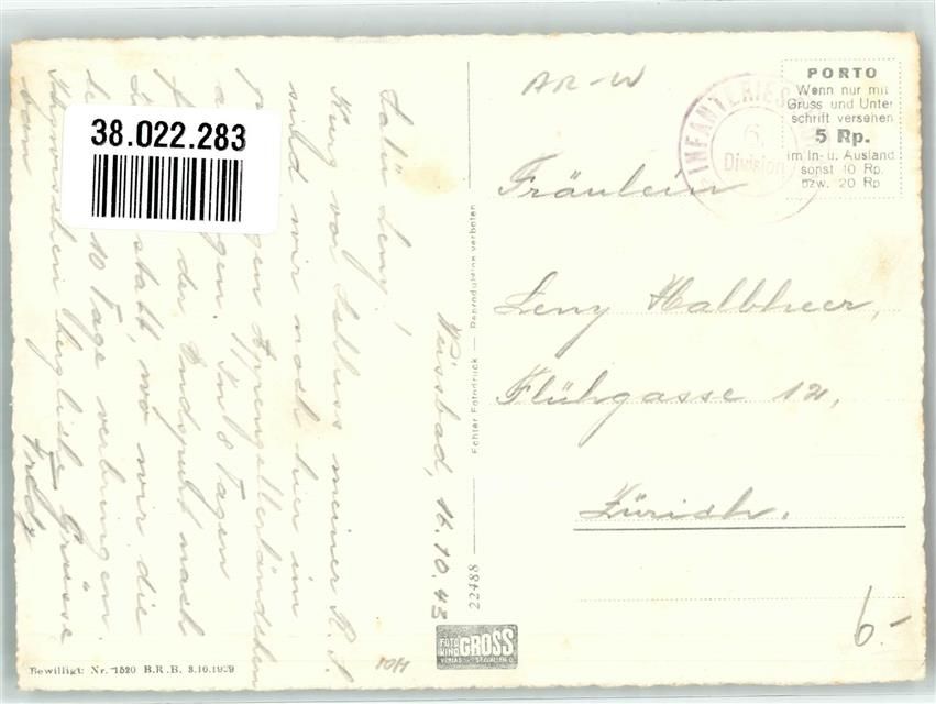 Weissbad, Feldpost Infanterie 6. Div. Ebenalp Schäfler Öhrli