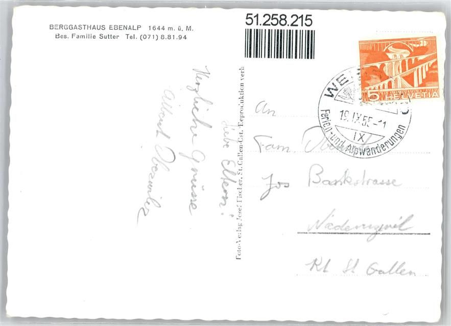 Weissbad, Foto-Karte Berggasthaus Ebenalp Ort laut Stempel