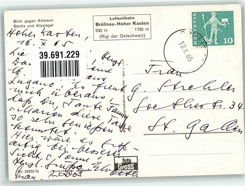 9058 Brülisau Foto AK Seilbahn zum Hohen Kasten Altmann Säntis Foto Gross