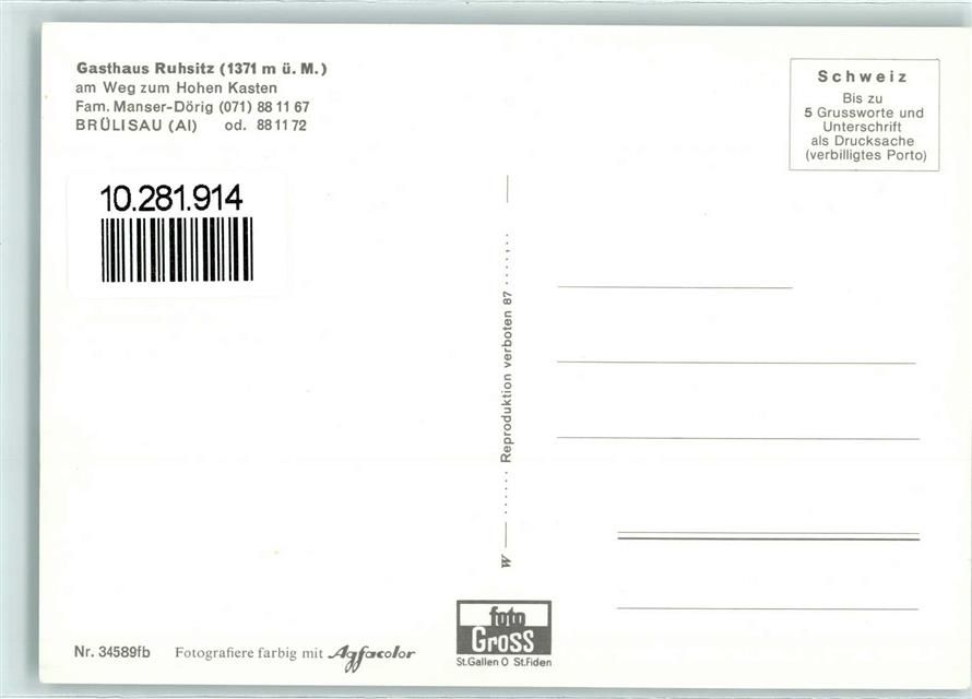 9058 Brülisau - Gasthaus Ruhsitz am Weg zum Hohen Kasten