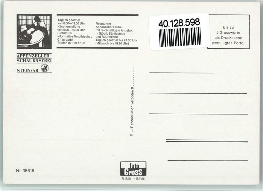 9063 Stein AR - Käser beim käsen und weisse Kühe an der Decke