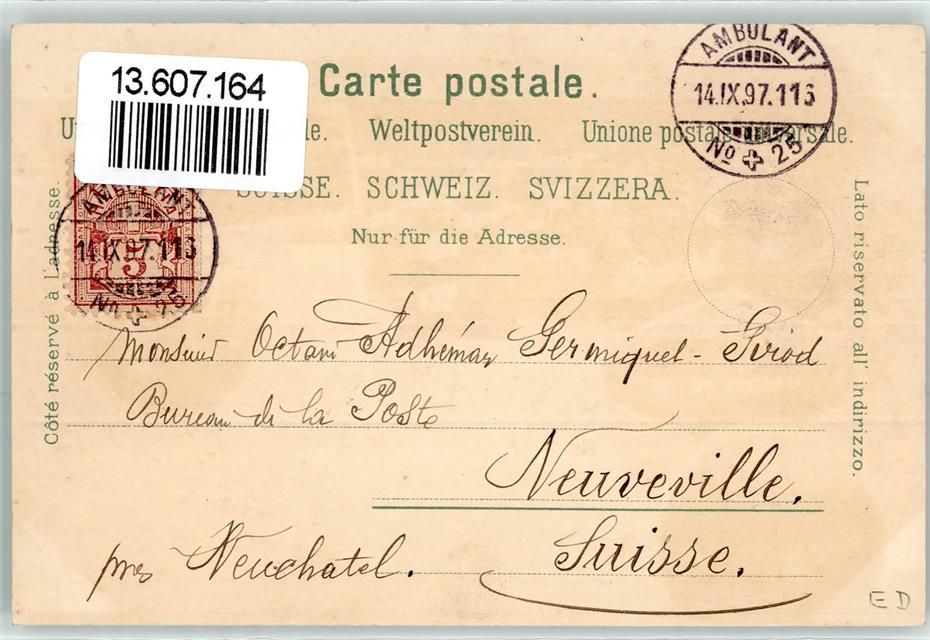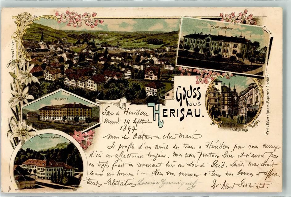 9100 Herisau 1897 - Kaserne Krankenhaus Heinrichs Bad Bahnpost Ambulant No 25