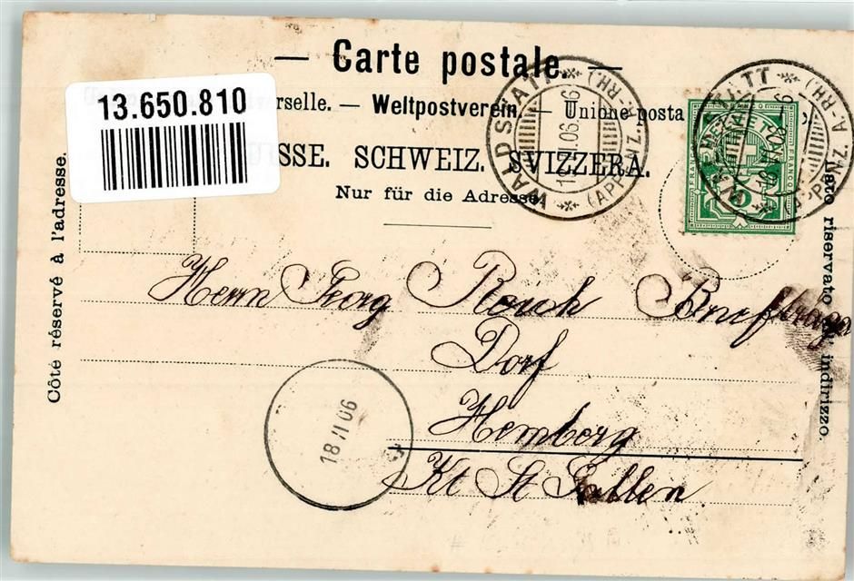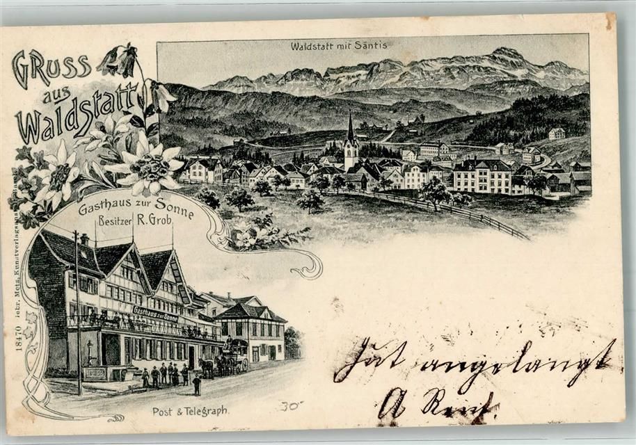 9104 Waldstatt 1906 Lithographie Gasthaus zur Sonne Post u. Telegraph